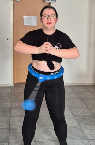 J'ai essayé le Hoopside Pro avec la ceinture abdominale et je suis ravie de l'intensité de l'entraînement ! Comme vous pouvez le voir sur la photo, il me fait vraiment transpirer. Au début, je n'aurais jamais pensé qu'un hula hoop pouvait être aussi efficace. Après seulement quelques minutes, je sens tout mon corps travailler et j'ai l'impression de brûler vraiment des calories.